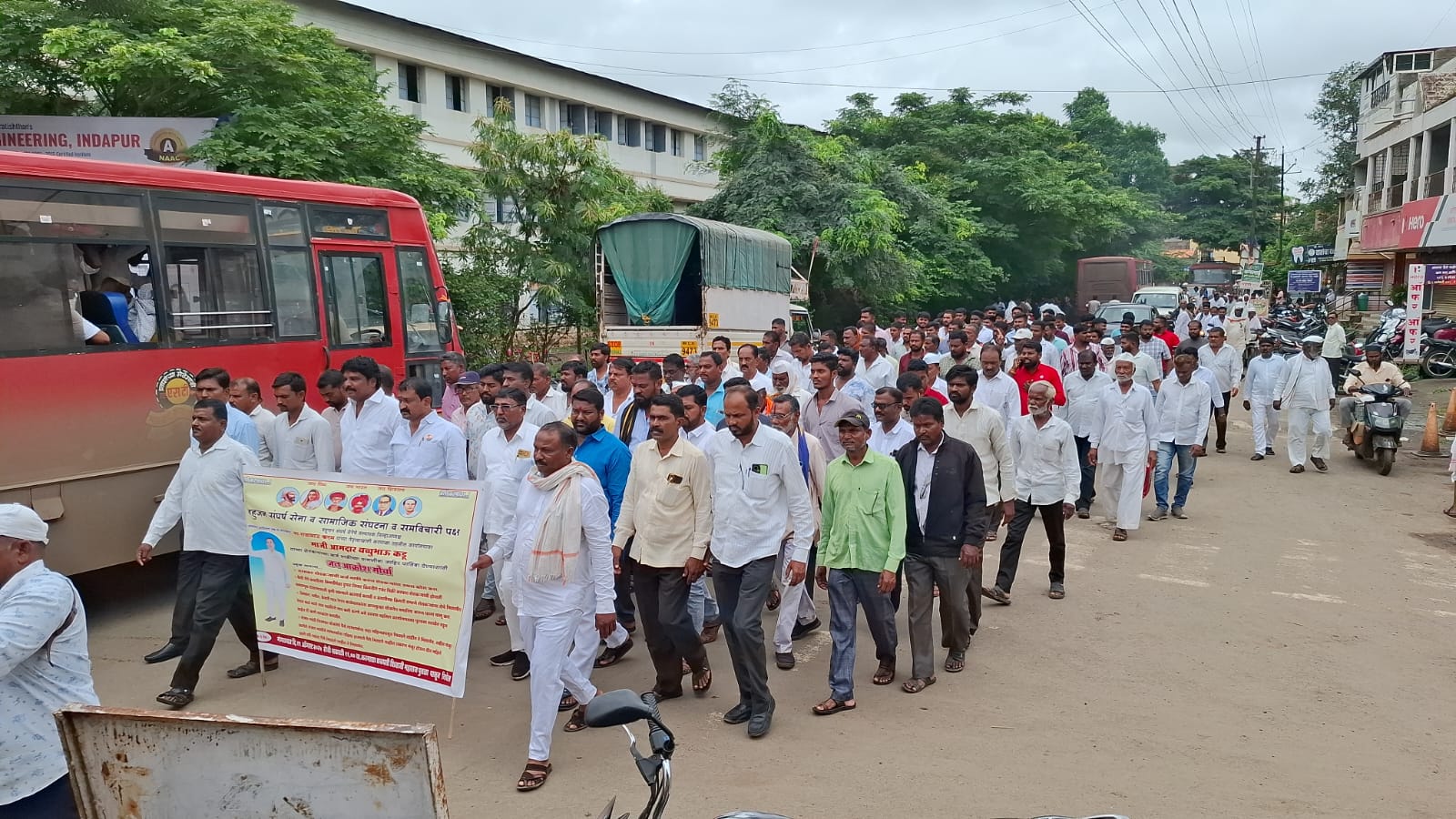 किमतीप्रमाणेच शेतकऱ्यांना मिळाली पाहिजेत, कंपनीपेक्षा दुप्पट तिप्पट किमतीने रोपे विकणाऱ्या एजंट वरती कृषी खात्याने कारवाई केली पाहिजे, पात्र केसरी रेशन कार्ड धारकांना अन्नसुरक्षा योजनेमध्ये बसून धान्य मिळाले पाहिजे, तहसील कचेरीच्या पुरवठा शाखेमध्ये नाव कमी करणे व नाव वाढवणे चे अर्ज एक वर्षापासून पडून आहेत ती काम ताबडतोब होण्यासाठी सर्वत्र गतिमान केले पाहिजे, संजय गांधी योजनेचे पैसे लाभार्थ्यांना सहा महिन्यापासून मिळाले नाहीत त्यांना ताबडतोब पैसे मिळाले पाहिजे, नवीन मंजूर झालेले प्रकरणांना मंजूर होऊन तीन महिने झाले परंतु त्यांना अद्याप पैसे मिळालेले नाहीत, त्यांना तात्काळ पैसे मिळावेत आमच्या मागण्या शासनाने मान्य कराव्यात अन्यथा या पेक्षाही तीव्र स्वरूपाचे आंदोलन करण्यात येईल. मुख्यमंत्री देवेंद्र फडणवीस यांनी विधानसभा निवडणुकीपूर्वी शेतकऱ्यांची सरसकट कर्ज माफी करतो असे सांगितले होते परंतु सत्ता आल्यानंतर मुख्यमंत्री देवेंद्र फडणवीस शेतकऱ्यांची कर्जमाफी करण्याची घोषणा करायला तयार नाहीत त्यामुळे महाराष्ट्रातील शेतकऱ्यांच्या मनामध्ये देवेंद्र फडणवीस यांच्या बद्दल रोष आहे.