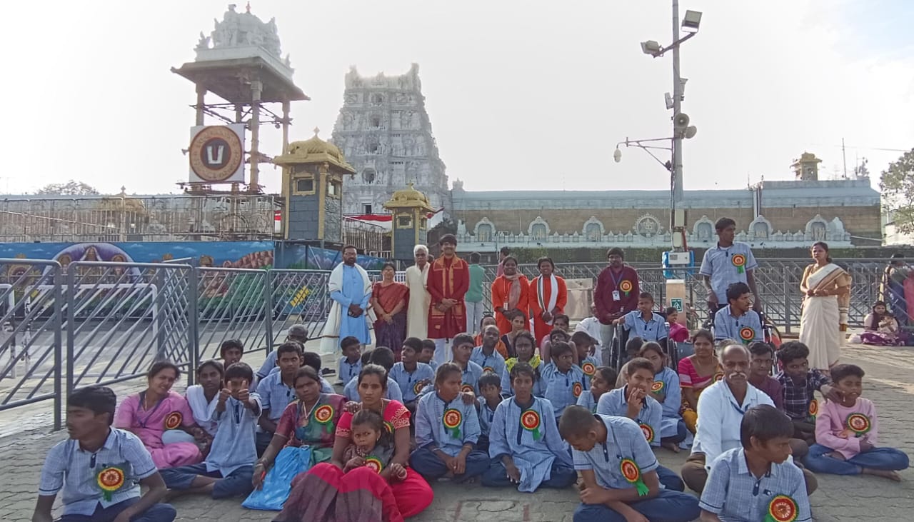 या पवित्र यात्रेदरम्यान दिव्यांग विद्यार्थ्यांना तिरुमला येथील श्री वेंकटेश्वर (बालाजी) भगवानाचे मनोभावे दर्शन घडले. दर्शनावेळी “गोविंदा गोविंदा”, “जय बालाजी जय जय बालाजी” या जयघोषांनी संपूर्ण तिरुमला परिसर भक्तिरसात न्हाऊन निघाला. विद्यार्थ्यांच्या चेहऱ्यावर ओसंडून वाहणारा आनंद पाहून उपस्थित भाविकही भावूक झाले.