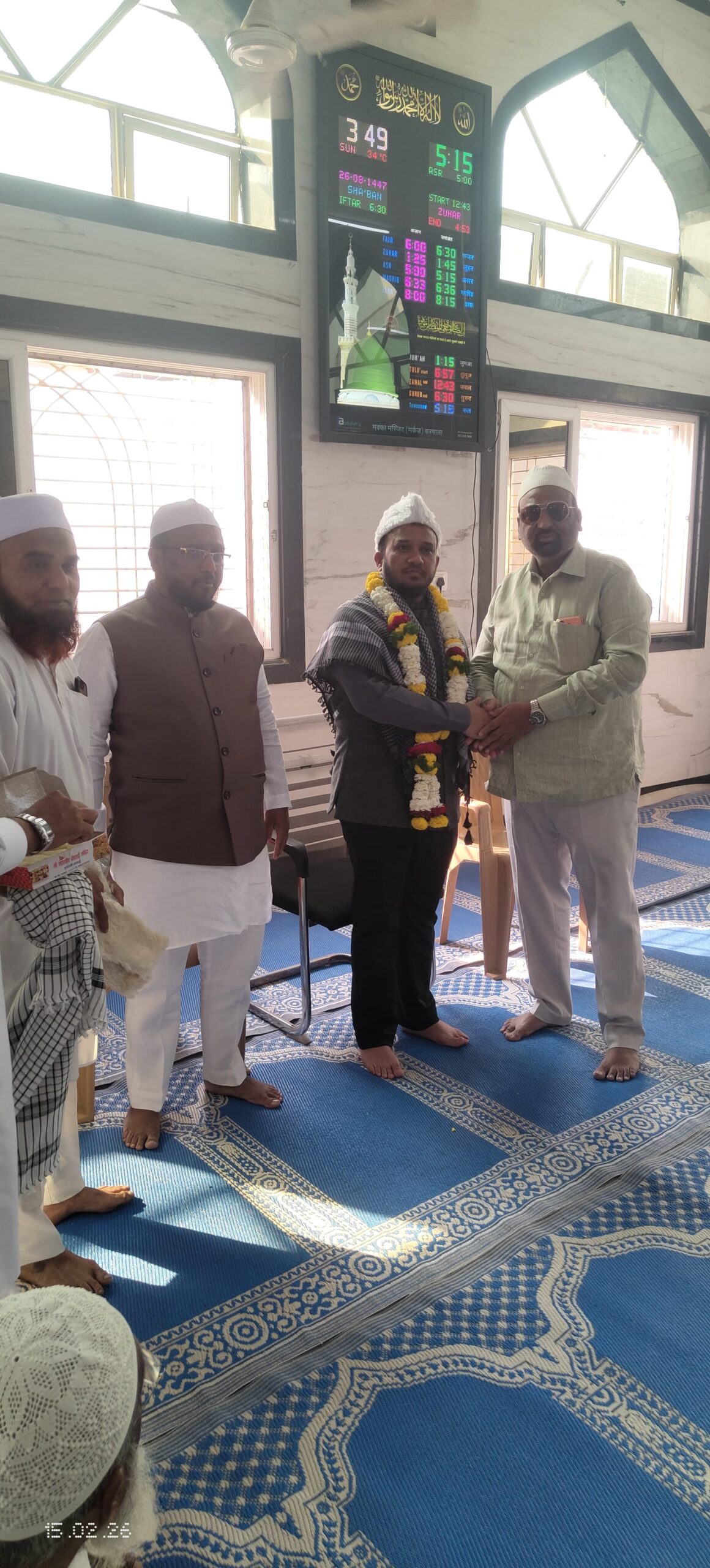 वक्फ कमिटीचे चेअरमन समीर काझी साहेब यांचे मक्का मस्जिद मध्ये त्यांचा सत्कार व स्वागत ट्रस्ट मार्फत करन्यात आले होते .तसेच वक्फ संबधी करमाळा शहर व तालुकयात ज्या काही अडचणी समस्याचे निराकरण करु असे चेअरमन यांनी जाहीर केले यावेळी तालुका मुस्लीम समाज अध्यक्ष अल्ताफ भाई तांबोळी, सादिकभाई शेख, मौला तांबोळी, सोहेल पठान ,मुस्ताक शेख सिकंदर मौलाना, अबगर आतार, खाजाहुसेन कुरेशी ,युसुफ हाजी सहाब ,असलम वस्ताद तसेच सर्व मशिदींचे ट्रस्टी व समाजबांधव उपस्थित होते
