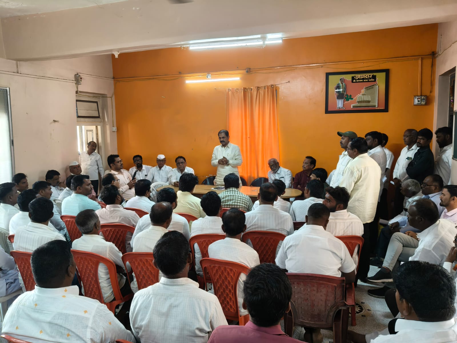 गटानुसार महावितरण आढावा बैठक घेणार असुन शाखा अभियंता व कर्मचारी यांनी कामात हलगर्जीपणा करु नये असे आदेश आमदार नारायण आबा पाटील यांनी दिले. या बैठकीस आदिनाथचे उपाध्यक्ष महेंद्र पाटील, माजी जेष्ठ संचालक धुळाभाऊ कोकरे, संचालक विजय नवले, जिल्हा परिषद सदस्य ज्ञानेश्वर गोडसे, पंचायत समिती सदस्य धनंजय शिरस्कर, पंचायत समिती माजी सभापती व नुतन सदस्य अतुल पाटील, माजी जिल्हा परिषद सदस्य बिभीषण आवटे, संचालक डॉ. हरिदास केवारे, प्रा. संजय चौधरी सर,संचालक रविकिरण फुके, संचालक रामेश्वर तळेकर, संचालक दत्ता गव्हाणे,संचालक नवले, संचालक श्रीमंत चौधरी, माजी संचालक रविभाऊ कोकरे,किसन शिंदे,विठ्ठल शिंदे,दादा भांडवलकर,राजू भोसले, बंडू शिंदे,अनिल कोकाटे,सागर पोरे,शाहजी पाटील,निवास उगले,राजेंद्र ठोंबरे,दादा भांडवलकर,मावली भागडे,संजय तनपुरे,तात्यासाहेब गोडगे,राजाभाऊ झोळ,शरद भोसले,गणेश जगताप, शमरावं झिणजाडे,दत्तू पाटील,अमर जगताप,अजित वगरे,अभिजित जगताप, भारत मोगल, सिद्धार्थ जिंगळे,पंडित रणदिवे, रामभाऊ नलावडे,किरण पाटील,रावसाहेब नेमाने, दत्तू शिंदे,संजय तोरमल, गणेश सव्वासे, संतोष कोपनर, संतोष पाटील, बाबासो कोपनर, विनोद शिंदे, हबीब मुलानी,मौलाना शेख,नाना पवार, चंदू पालवे, अण्णा आडेकर, धनु ननवरे,दत्तात्रय आर्किले, मनोहर गोडगे, भैय्या शिंदे, शिवाजी नरुटे, गणेश फुके, बिभीषण हुलगे, कैलास कोकरे, नाथा रणदिवे,शेजाळ उपसरपंच,जायद्रत शिंदे,शेळके सर, अंकुश शिंदे साडे, सुखदेव ढाळे,धनंजय जाधव,किसन घोडके,तात्या काळे,आदि उपस्थित होते. प्रास्तविक आमदार पाटील गटाचे प्रवक्ते सुनील तळेकर यांनी केले तर आभार माजी जिल्हा परिषद सदस्य चंद्रप्रकाश दराडे यांनी मानले.