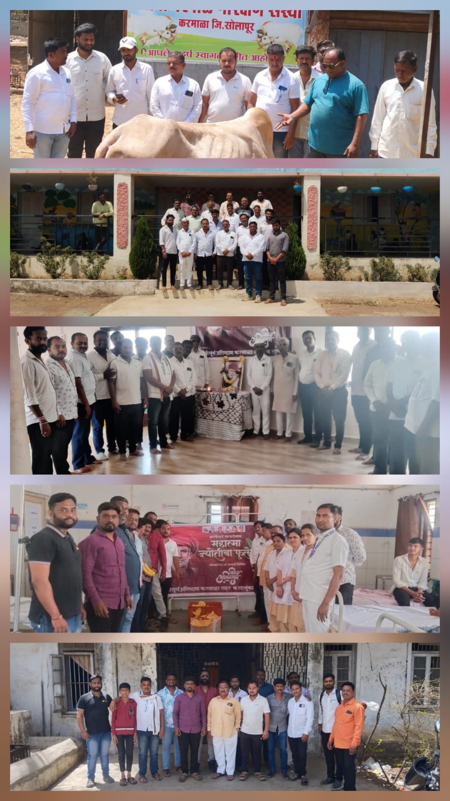 रक्तदान शिबिर आयोजित केले आहे. सर्वांनी रक्तदान करून देशाचे नागरिक म्हणून कर्तव्य पार पाडावे. महात्मा जोतीराव फुले यांचा आदर्श डोळ्यासमोर ठेवून सर्व क्रांतीसुर्य प्रतिष्ठानच्या कार्यकर्त्यांनी करमाळा तालुका व शहर वरील उपक्रम राबवले. सुनील बनसुडे- (नगरसेवक- क.न.प.करमाळा) यांच्या मार्गदर्शनाखाली सदर उपक्रम घेण्यात आले. वरील उपक्रमामुळे करमाळा शहरातील नागरिकांमध्ये समाधानाचे वातावरण निर्माण झाले. महात्मा फुलेंनी शेवटच्या श्वासापर्यंत सामाजिक व शैक्षणिक कार्य केले. याबद्दलची कृतज्ञता म्हणून त्यांची जयंती सुद्धा अन्नदान, चारा वाटप व फळे वाटप करून साजरी होणे ही बाब कौतुकास्पद आहे. यामुळे करमाळा शहर व तालुका यामधील समस्त नागरिक क्रांतीसुर्य प्रतिष्ठानचे कौतुक करत आहेत.