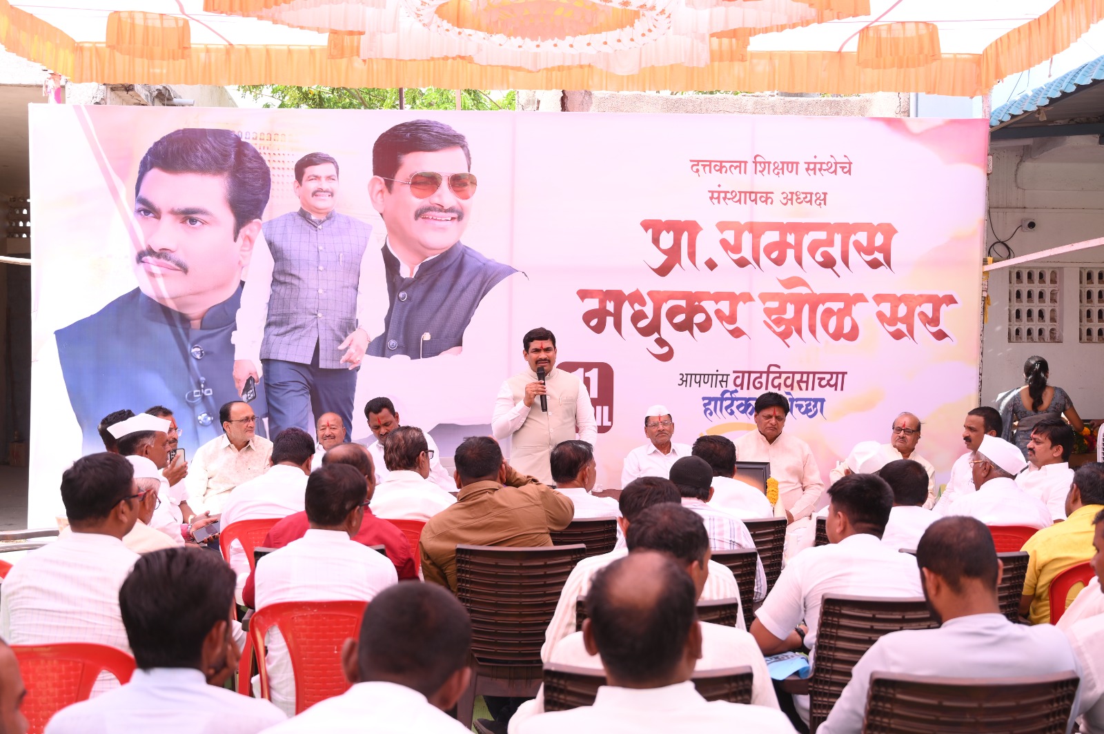 शनिवार दिनांक 11 एप्रिल रोजी प्रा.रामदास झोळ यांचा वाढदिवस करमाळा येथील प्रा.रामदास झोळ फाउंडेशन संपर्क कार्यालयात साजरा करण्यात आला. यावेळी सत्काराला उत्तर देताना ते बोलत होते. वाढदिवसानिमित्त उपस्थित मान्यवर विविध क्षेत्रातील पदाधिकारी, कार्यकर्त्यांनी त्यांना वाढदिवसाच्या शुभेच्छा दिल्या.