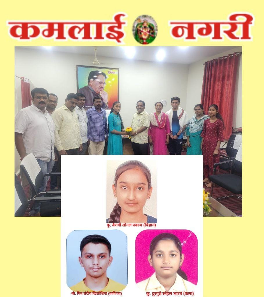 कदम प्रताप संतोष (88.83%) तसेच विज्ञान शाखेमध्ये प्रथम क्रमांक कु. बैरागी सोनल प्रकाश (92.00%), द्वितीय क्रमांक शिंदे शुभम सोमनाथ (82.83%) व तृतीय क्रमांक कु. कांबळे साक्षी पोपट (76.17%) तसेच वाणिज्य शाखेतील मित संदीप