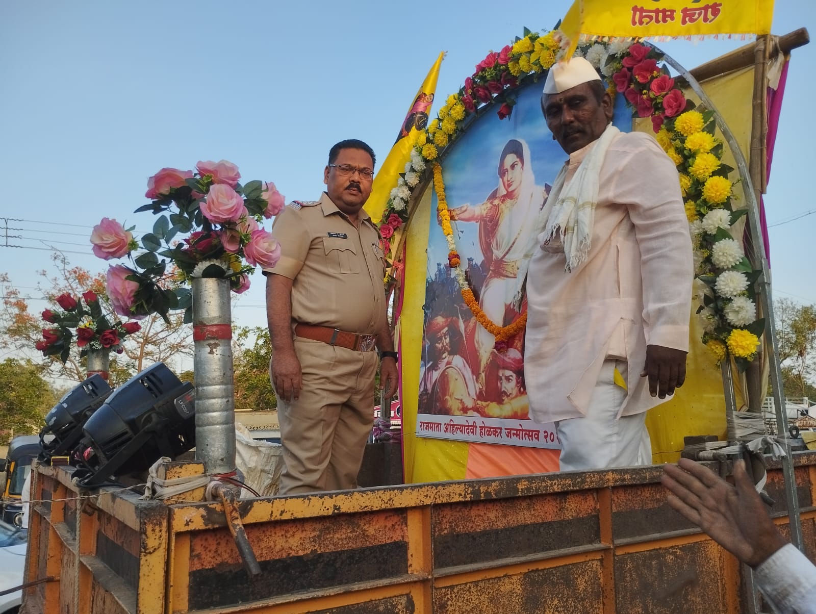 बंद केली व स्त्री ला शिक्षण घेण्याची मुभा राजमाता अहिल्याबाई होळकर यांच्या राज्यामध्ये सुरू केली, गोरगरिबांना राज्यामध्ये सरकारच्या जमिनी कशासाठी दिल्या, दरोडेखोरांना सुद्धा शिक्षा न करता त्यांना रोजगार मिळवून दिला, सैन्यामध्ये भरती केले, स्वतःच्या मुलाला शिक्षा देण्यासाठी सुद्धा त्यांनी कसर केली नाही, त्यांनी भरपूर न्यायदान केले. मिरवणुकीची सांगता छत्रपती शिवाजी महाराज यांच्या पुतळ्यापाशी झाली. मिरवणूक शांततेमध्ये पार पडली महाराष्ट्र राज्य धनगर समाज उन्नती मंडळाचे अध्यक्ष आण्णासाहेब सुपनवर यांनी सर्वांचे आभार व्यक्त केले.