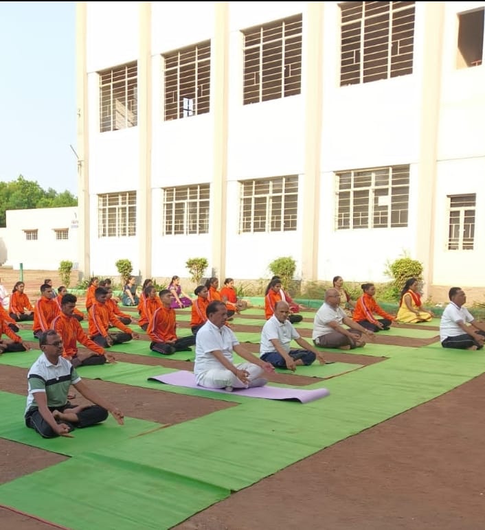 उपस्थित होते .या योगा दिनानिमित्त उपस्थित असलेल्या सर्व मान्यवरांचे वरिष्ठ विभागाचे फिजिकल डायरेक्ट डॉ.अतुल लकडे स्वागत करून.कार्यक्रमाच्या शेवटी सर्वांचे आभार व्यक्त केले.