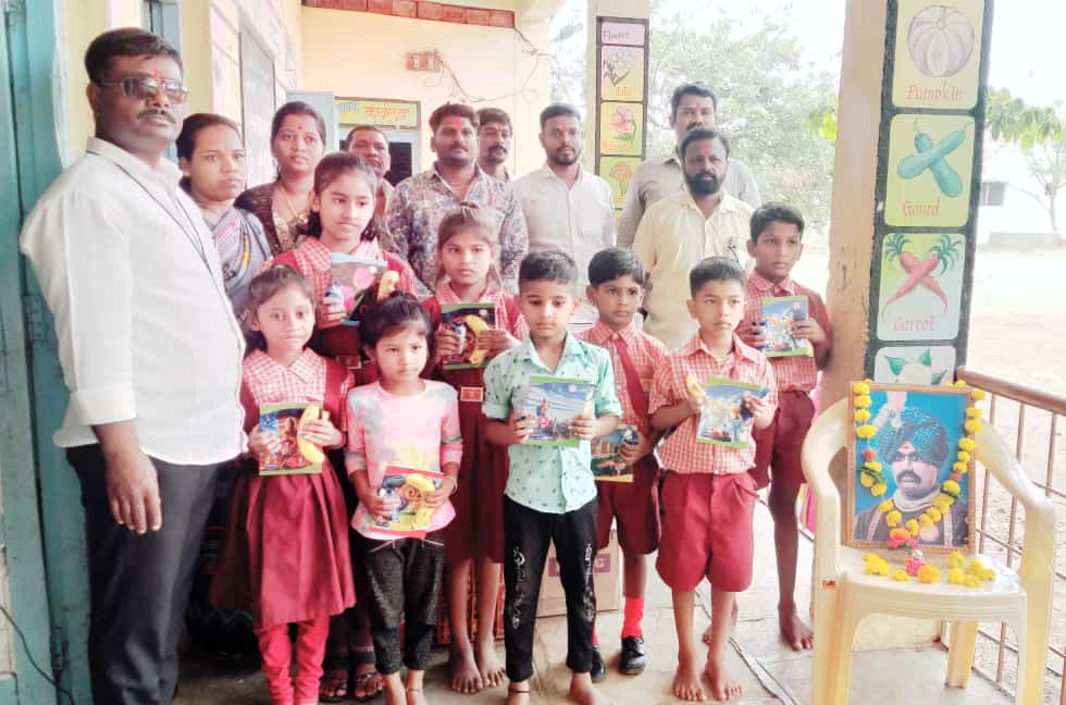 विद्यार्थ्यांना 200 पाणी वह्या व बिस्कीटपुडे आणि केळी वाटप करण्यात आले. डॉ. तुषार, डॉ. शिवानी पाटील, बाळू शिंदे,