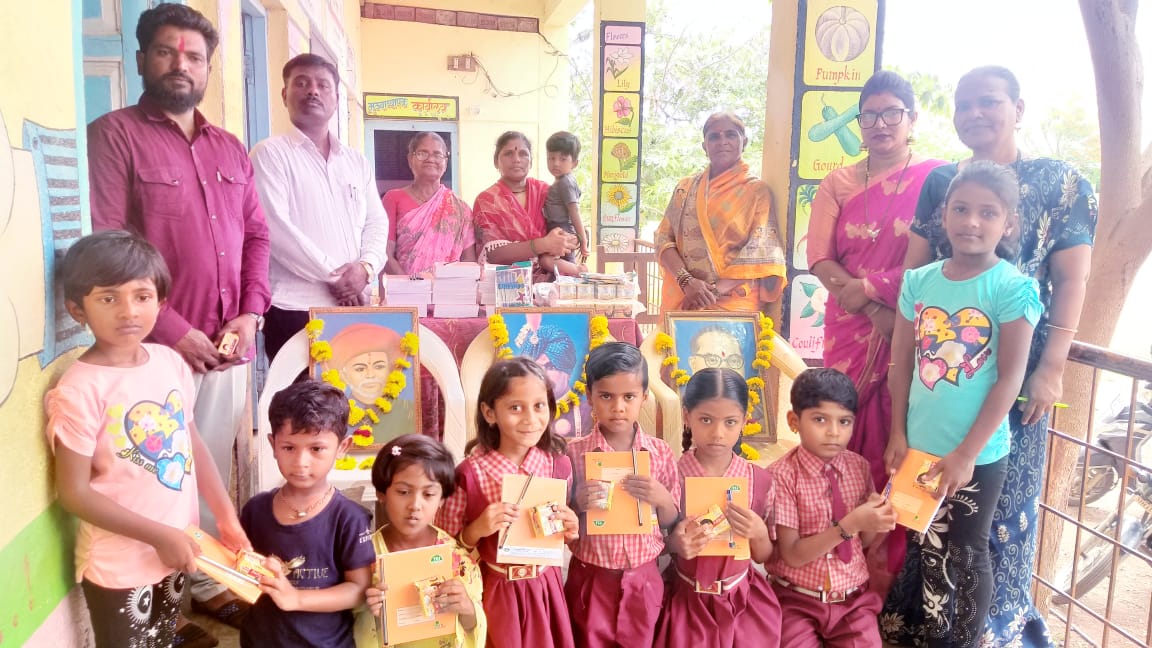 मुलगी कृतिका हिच्या वाढदिवसाचे औचित्य साधून भा. डॉ. बाबासाहेब आंबेडकर प्रशालेतील सर्व विद्यार्थ्यांना पेन, पेन्सिल