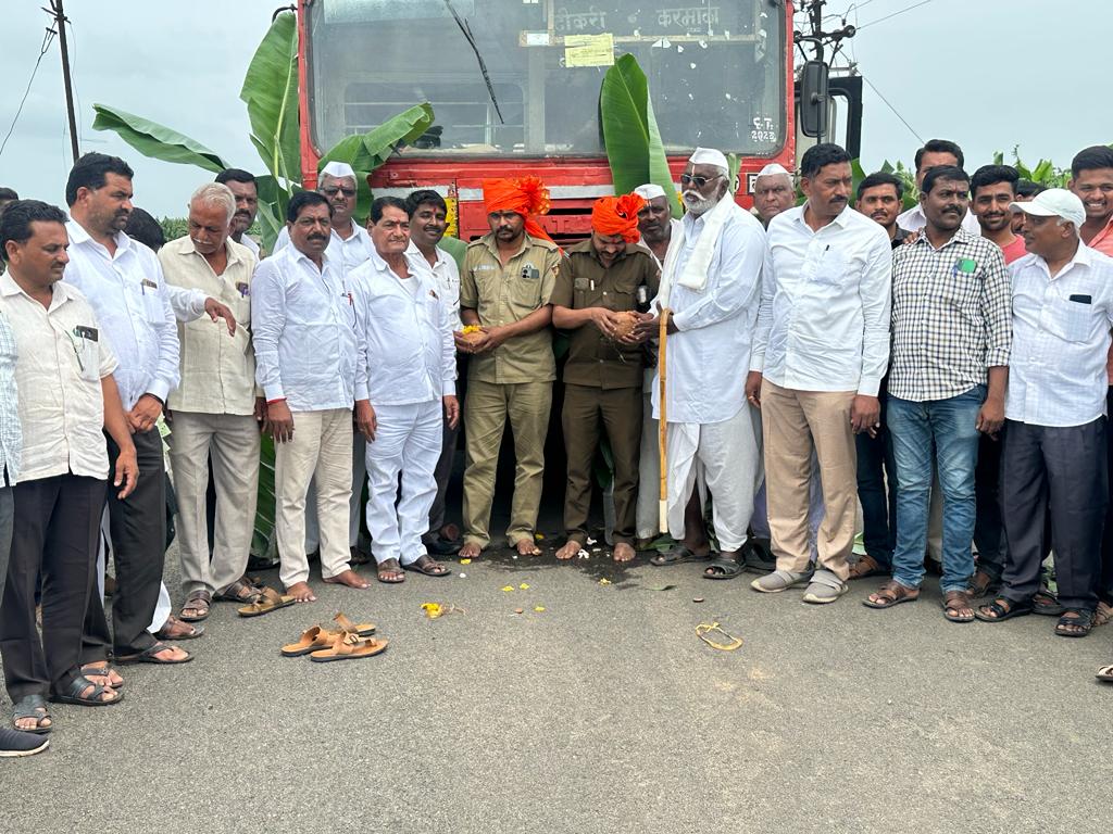 करमाळा ढोकरी बसचे वांगी परिसरातील नागरिकांनी स्वागत केले