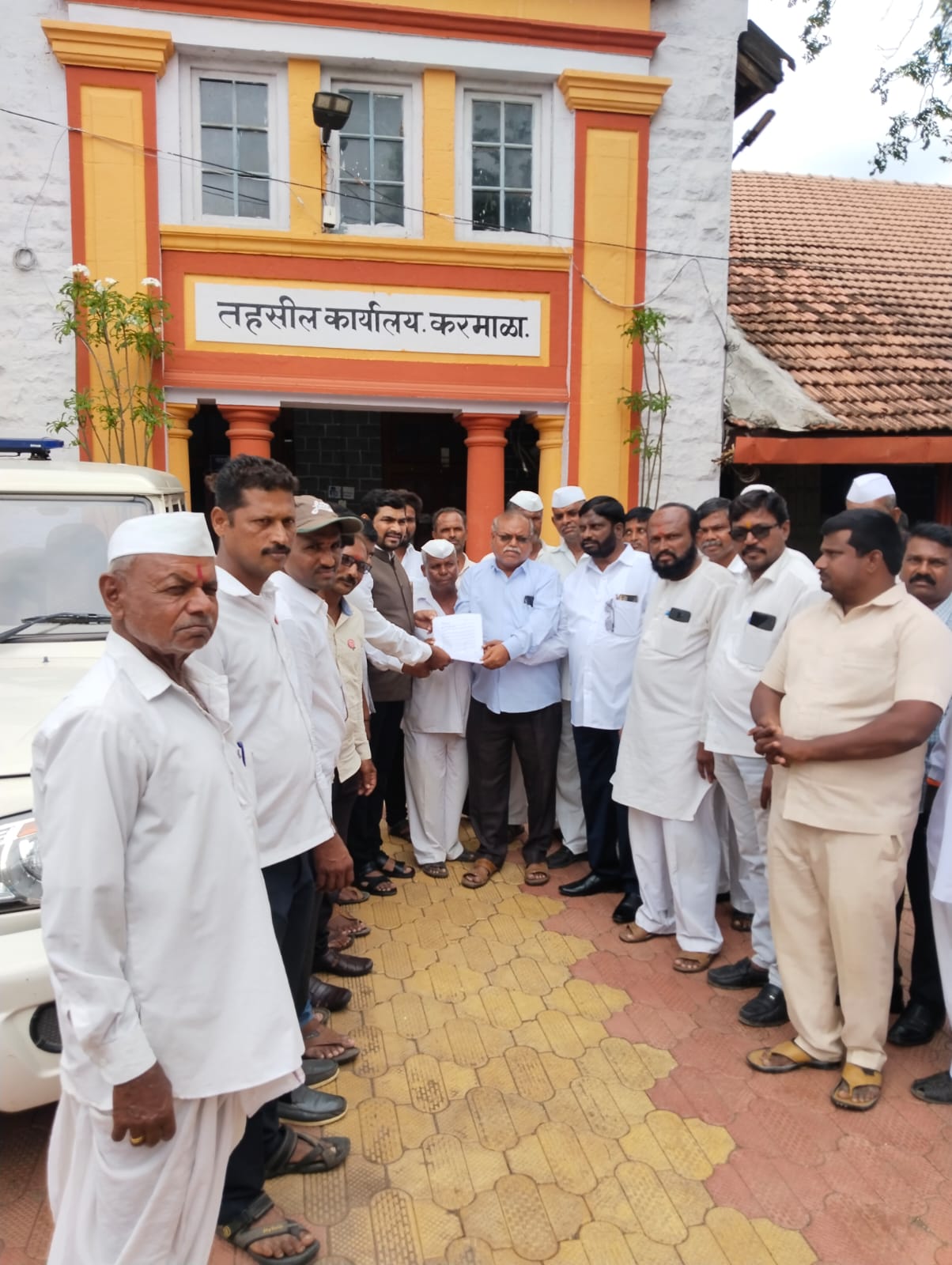 करमाळ्यात पाऊस न पडल्याने शेतकरी व कष्टकरी प्रचंड अडचणीत आलेले आहेत. त्यामुळे करमाळा तालुका तात्काळ दुष्काळग्रस्त तालुका म्हणून घोषित करण्यात यावा. करमाळा तालुक्यात मध्ये तहसीलदार व प्रांत पूर्ण वेळ उपलब्ध नसल्यामुळे तालुक्यातील विद्यार्थ्यांना शैक्षणिक दाखले वेळेत मिळत नाहीत. त्यामुळे विद्यार्थी प्रवेशासाठी मोठी अडचण