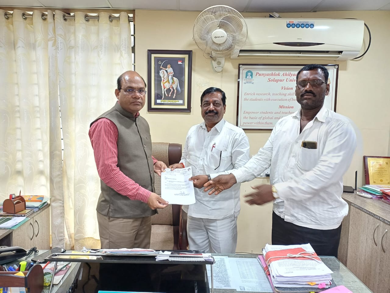 विद्यापीठाच्या वतीने प्र कुलगुरू डाॅ गौतम कांबळे यानी निवेदन स्वीकारले.