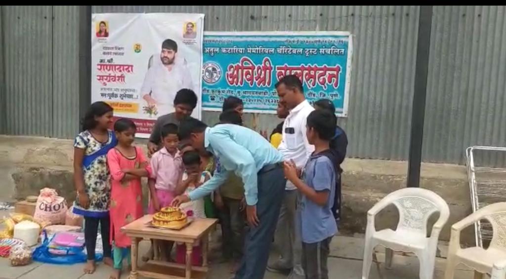 किराणा साहित्याचे वाटप करण्यात आले व उपस्थित सर्व मुलांच्या हस्ते केक कापण्यात आला व सर्व मुलांना खाऊचे वाटप करण्यात आले. त्यानंतर राणादादा यांनी त्या मुलांना दिलेल्या संदेशाचे व त्यांच्याप्रति असलेली आत्मीयता कशाप्रकारे व्यक्त