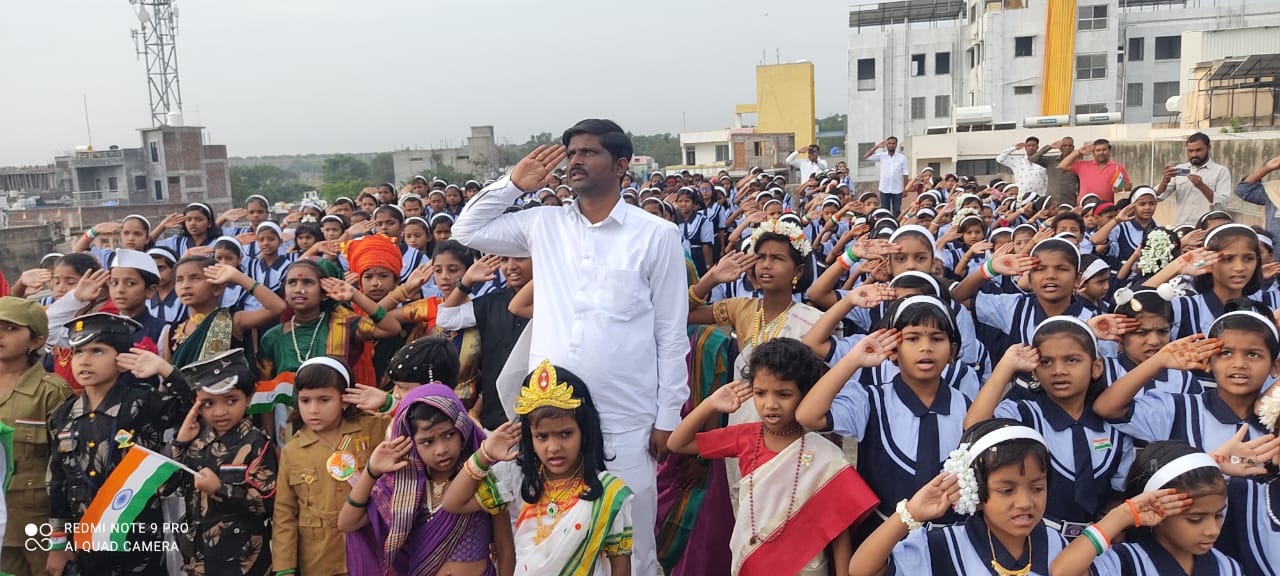 काढली रॅलीतील थोर महापुरुषांच्या वेशभूषेतील विद्यार्थिनी व युनिफॉर्म मधील 325 विद्यार्थिनी सर्व शिक्षक,पालक सहभागी झाले होते रॅलीने शहरातील सर्व नागरिकांचे लक्ष वेधून घेतले. या स्वातंत्र्य रॅलीचा नगरपरिषद येथील ध्वजारोहण
