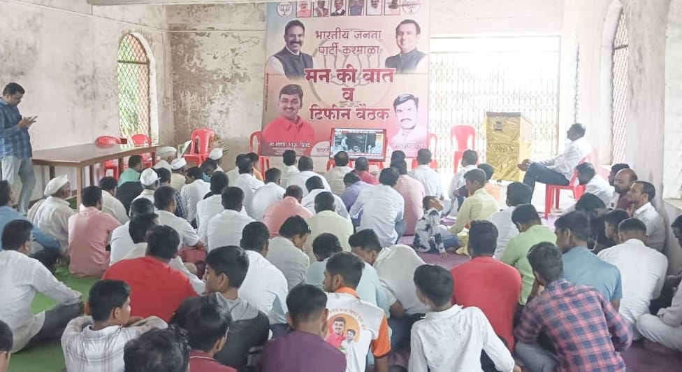 करमाळा भाजपाच्या वतीने देवळाली येथे मन की बात कार्यक्रम व टिफिन बैठक संपन्न —