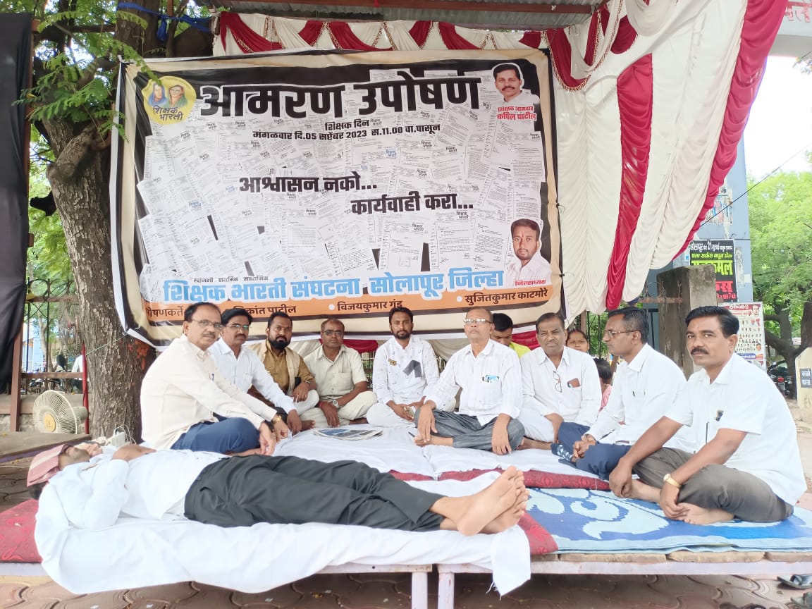सोलापूर जिल्हा परिषद प्राथमिक व माध्यमिक शिक्षण विभागामध्ये गेल्या अनेक वर्षांपासून प्रलंबित कामांच्या बाबतीत संघटनेने सातत्याने पाठपुरावा करून देखील यश न आल्याने शिक्षक भारती संघटनेने आमरण उपोषण सुरू केले आहे.