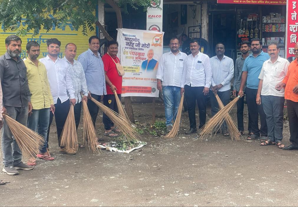 राष्ट्रनेता ते राष्ट्रपिता नरेंद्र मोदी यांच्या वाढदिवसा पासून महात्मा गांधी यांच्या जयंतीनिमित्त भारतीय जनता पार्टी आयोजित सेवा पंधरवडा निमित्त आज करमाळा भारतीय जनता पार्टीच्या वतीने कै.नामदेवराव जगताप शॉपिंग कॉम्प्लेक्स राशिन रोड येथे स्वच्छता अभियानाचे आयोजन केलं होते.