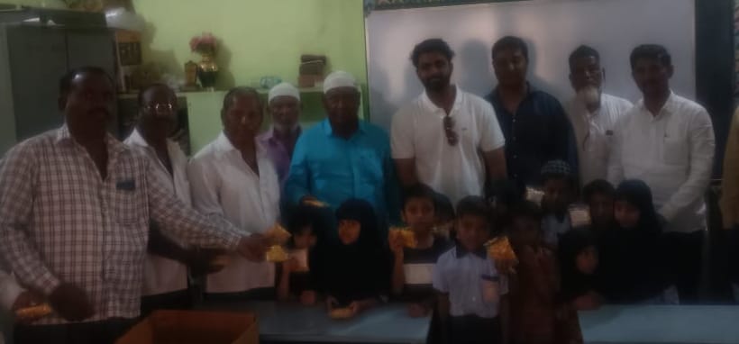 पैगंबर जयंती व महात्मा गांधी जयंती निमित्त उर्दू शाळेत खाऊ वाटप